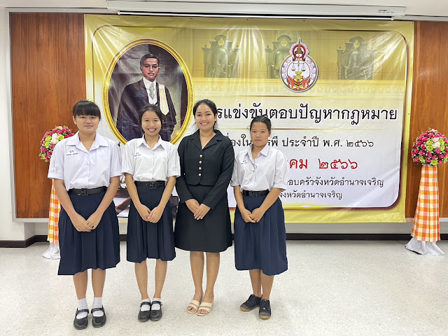 วันศุกร์ที่ 4 สิงหาคม พ.ศ. 2566 นางสาวปานทอง โสวันนา ตำแหน่ง ครูผู้ช่วย นำตัวแทนนักเรียน โรงเรียนปทุมราชวงศา ได้แก่ 1. นางสาวกมลรัตน์ บุญจอง ม.5/1 2. นางสาวเนตรนภา  จุกจันทร์ ม.4/2 3. นางสาวอรัญญา ศิริโสม ม.4/2 เข้าร่วมการแข่งขันตอบปัญหากฎหมาย เนื่องในวันรพี ประจำปี 2566 ณ ศาลเยาวชนและครอบครัวจังหวัดอำนาจเจริญ ซึ่งมีภาพบรรยากาศดังนี้