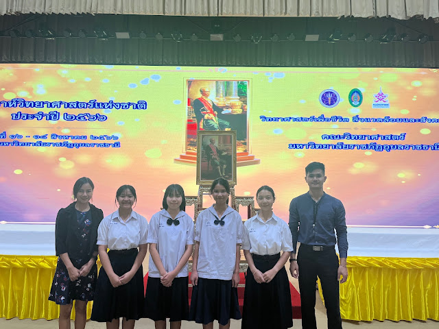 วันพุธที่ 16 สิงหาคม พ.ศ. 2566 ตัวแทนนักเรียน 1.เด็กหญิงเพชรดา วันดี ม.3/1 2.เด็กหญิงธัญชนก ถาพร ม.3/1 3. นางสาวชิดชนก โสมรักษ์ ม.6/1 4.นางสาวธัญลักษณ์ บัวลา ม.5/1 โรงเรียนปทุมราชวงศา จังหวัดอำนาจเจริญ ได้เข้าร่วมการแข่งขันตอบปัญหาวิทยาศาสตร์ ม.ต้น และ ม.ปลาย เนื่องในวันวิทยาศาสตร์ ประจำปี 2566 ณ มหาวิทยาลัยราชภัฏอุบลราชธานี ซึ่งมีภาพบรรยากาศดังนี้